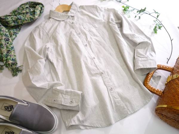- ★アースミュージック&エコロジー★丸襟 刺繍入りコットンシャツ Sサイズ