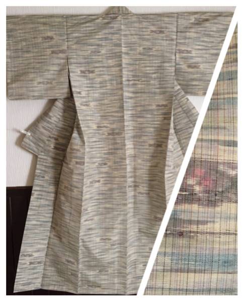 - 【紬の着物】正絹/袷/身丈156.7cm/霞のような柄/八掛は漉餡色
