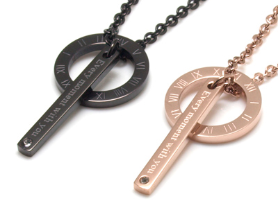 > ★お勧め★金属アレルギー&海水浴&温泉OK★ステンレスペアペンダント★ブラック&ピンクゴールドリングバー&アトラスローマ数字&ジルコニア
