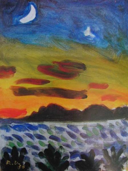- 梅原龍三郎、カンヌ・月と雲、希少高級画集画、新品額装付、状態良好、送料込み
