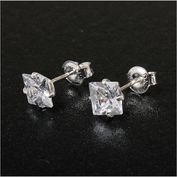 > シルバー925 SILVER925 ピアス 四角 スクエア 正方形 タイプ 6mm粒 6ミリ 銀製品 ストリート キュービック ジルコニア アメージング 服