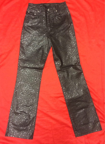 - フランス製未使用 ACQUAVERDE オーストリッチ風 フレアパンツ 黒