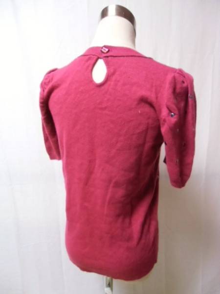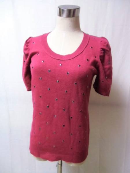 - 極美品◆レベッカテイラースタッズ付 赤ニットTシャツ サイズ2 サイズcm:着丈60 身幅43◆8-12-6