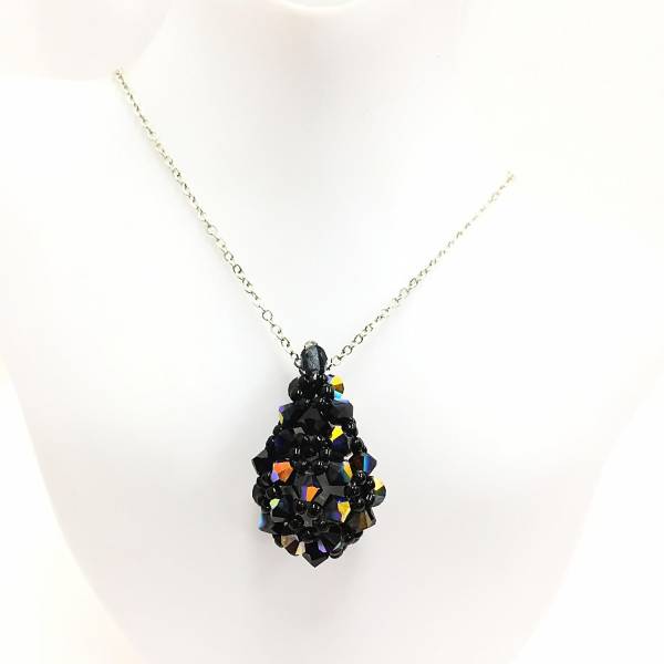 - 【ネックレス】約44cm キラキラ輝く漆黒のストーン ドロップ型 涙型