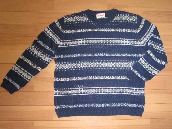 - ★Mc GREGOR フェアアイル&透かし編み 綿クルーネックセーター ★青★