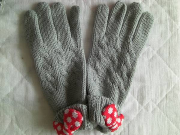 - ★ディズニーリゾート・ミニー・ドット柄リボン・手袋・グレー★