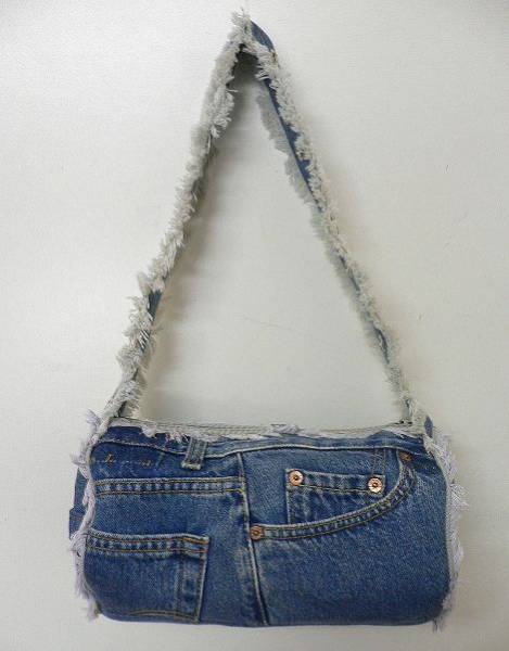- ジーンズ リメイク デニム ドラム型ハンドバッグ 1点のみ/ハンドメイドバッグALL20%OFF