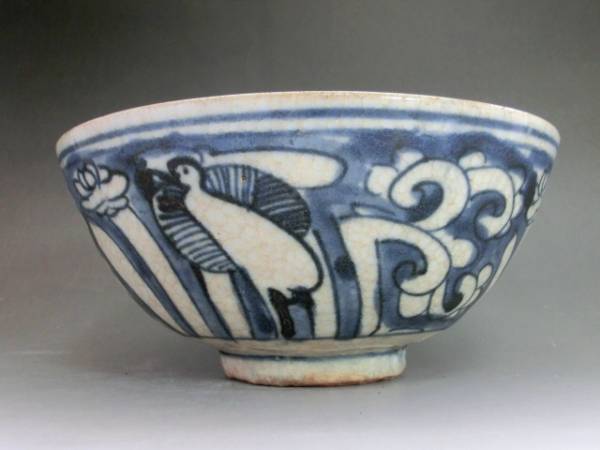 > 茶碗■鉢 古い染付 鷺(さぎ) 花唐草 お茶道具 菓子器 古玩 唐物 古美術 時代物 骨董品■