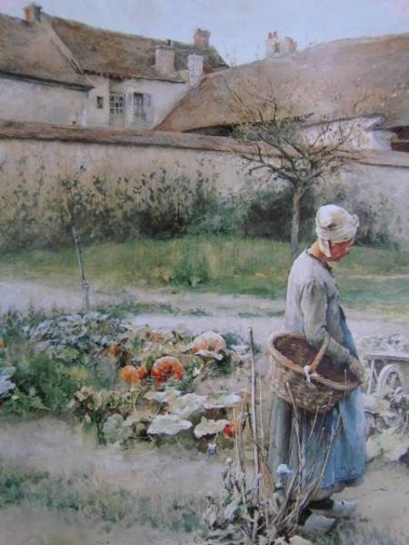 - カール・ラーション、10月(南瓜畑)、希少画集画、新品額装付、状態良好