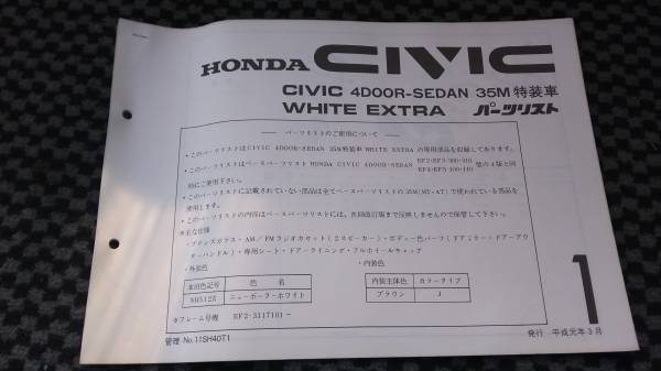 - シビック EF2 EF3 EF4 EF5 特別仕様車 パーツリスト 35M WHITE EXTRA