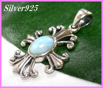 - シルバー925銀の天然石ラリマー[ドミニカ産]十字架クロス ペンダント