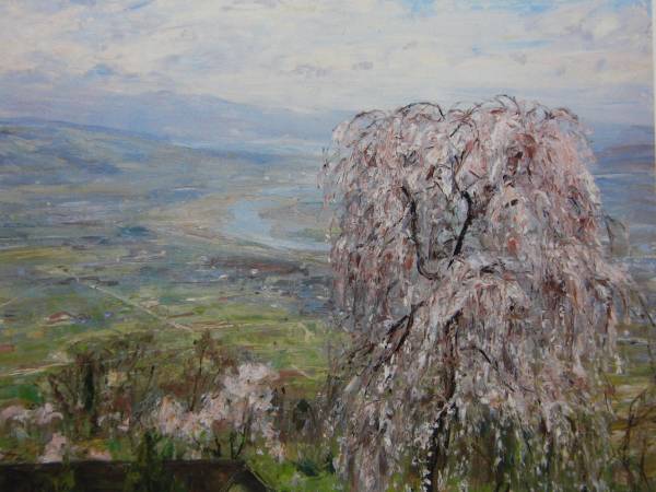 - 刑部人、『姨捨枝垂桜』、希少画集画、高級新品額・額装付、状態良好、送料無料
