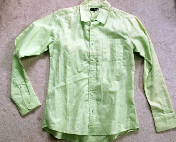 - ざっくり素材 綺麗なネオンカラー黄緑色リネン綿麻シャツ難有り