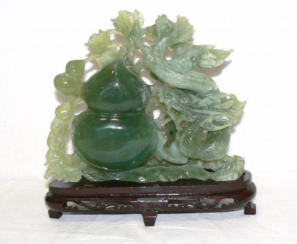 - 緑石彫刻 龍と千成瓢箪 805107BL1564