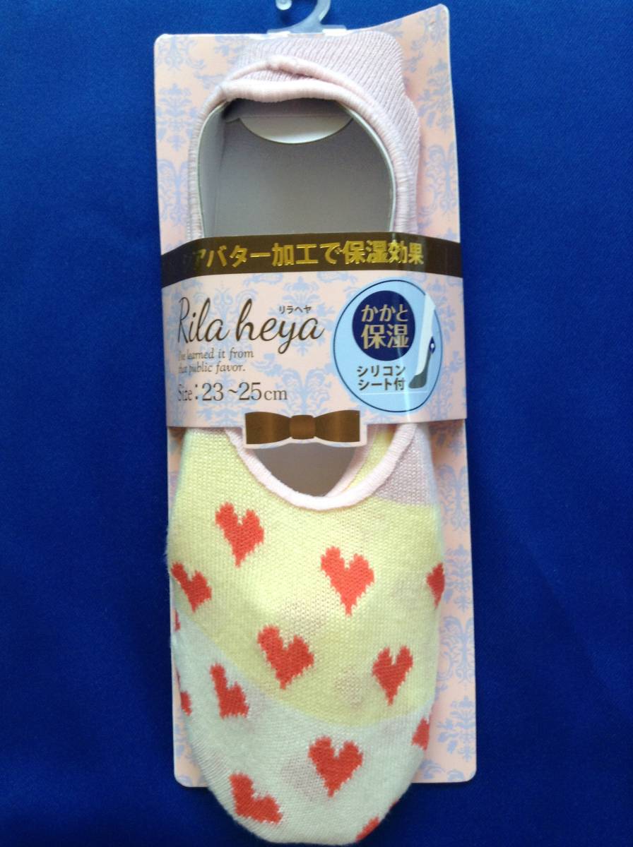 - 【助野】リラヘヤ[Rila HEYA] 室内ソックス/ショートソックス 黄色×ハート柄 23-25cm