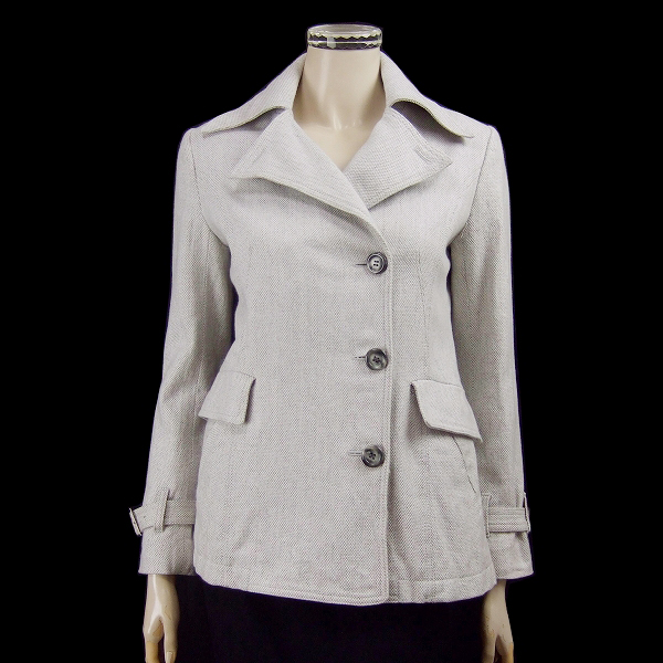> 美品★エヴー*et vous*淡グレー系*厚手コットン混*ダブルポケット*後ろベルト*デザインハーフコート*36(Sサイズ.7号)