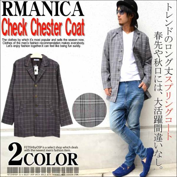 - チェック柄薄手キャバ素材チェスターコート新品グレーM