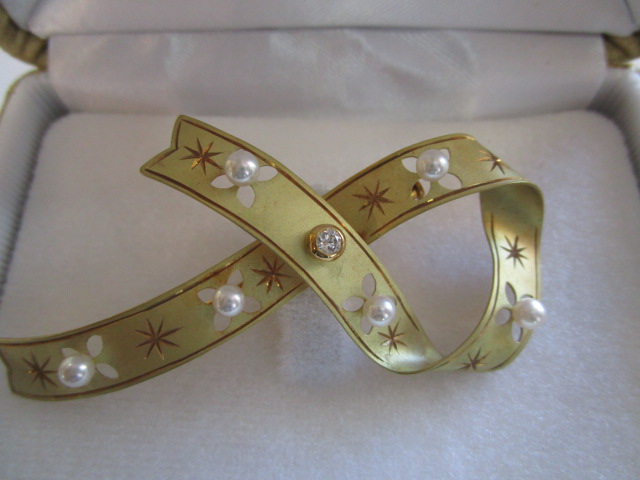 - ∈Å∋長期在庫品に付きお買い得!!☆K18ダイヤ入りパールプローチ☆