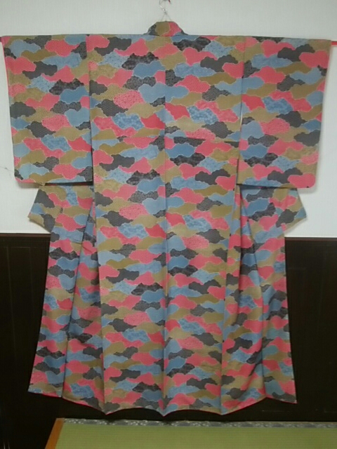 - [ 小紋の着物]正絹/袷/身丈158cm/雲柄/躾有り