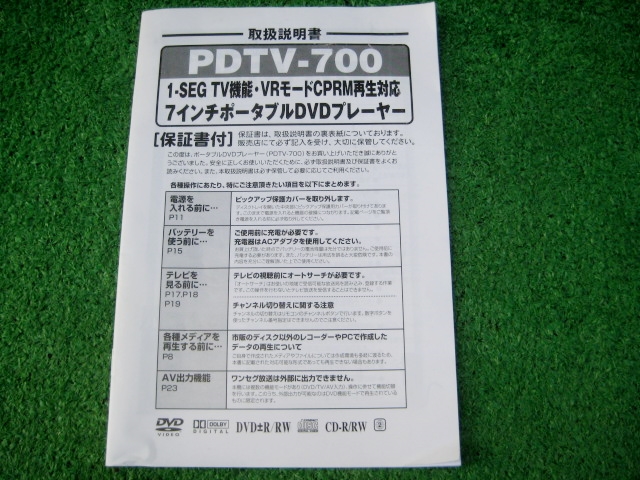 - 【取扱説明書】 KOM PDTV-700 ポータブルDVDプレーヤー