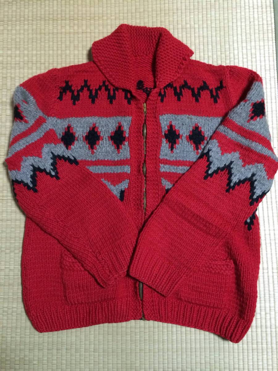 - カウチン 極厚 ハンドニット ビンテージ 50~70年代 USA製 米国 ネイティブ柄 秋冬物 希少レア 人気 アメカジ TALON 一点物 古着 赤灰黒
