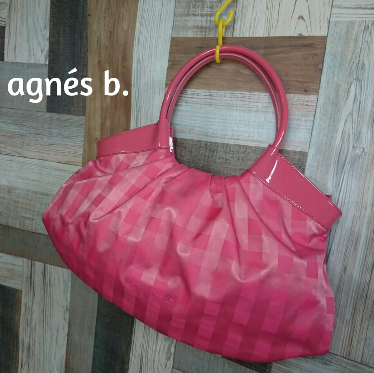 - agnes b. アニエスベー ショルダーバッグ チェック柄 ピンク 中古品 8ZB132