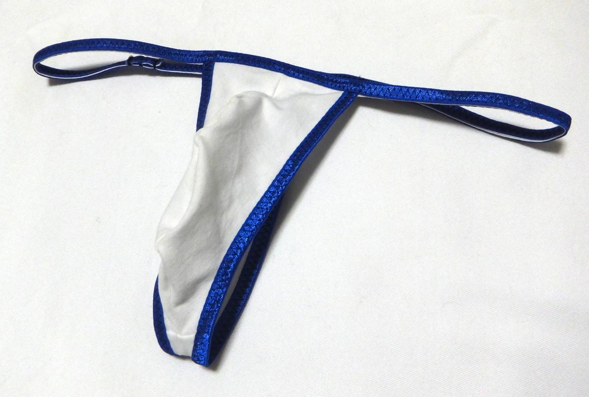 - 【新品】メンズ深めもっこりフルシーム柔らかコットン生地白×青Tバック