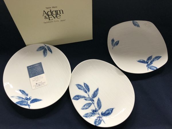 > 未使用品★アダム&イヴ(たち吉)パスタ皿 3種 全て形違い どんぐり絵 変形皿 箱あり2 管理1802 X-5