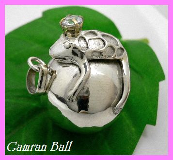- シルバー925銀の天然石アクアマリン付ガムランボール ペンダント/カエルの王子様