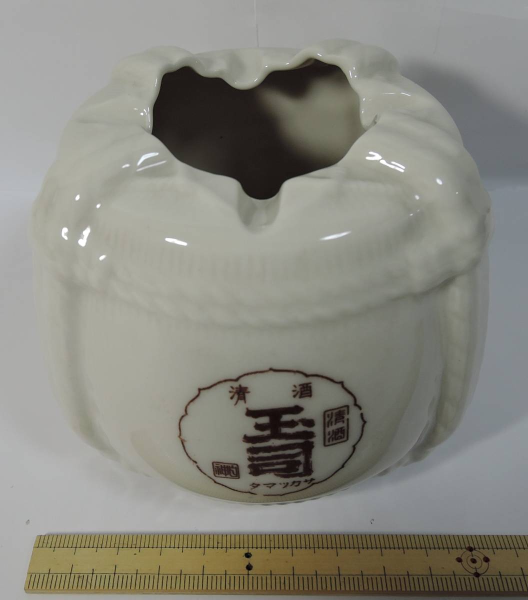 - A12■日本酒/清酒 玉司 陶器製酒樽灰皿■岡山県倉敷市 白神酒造 未使用