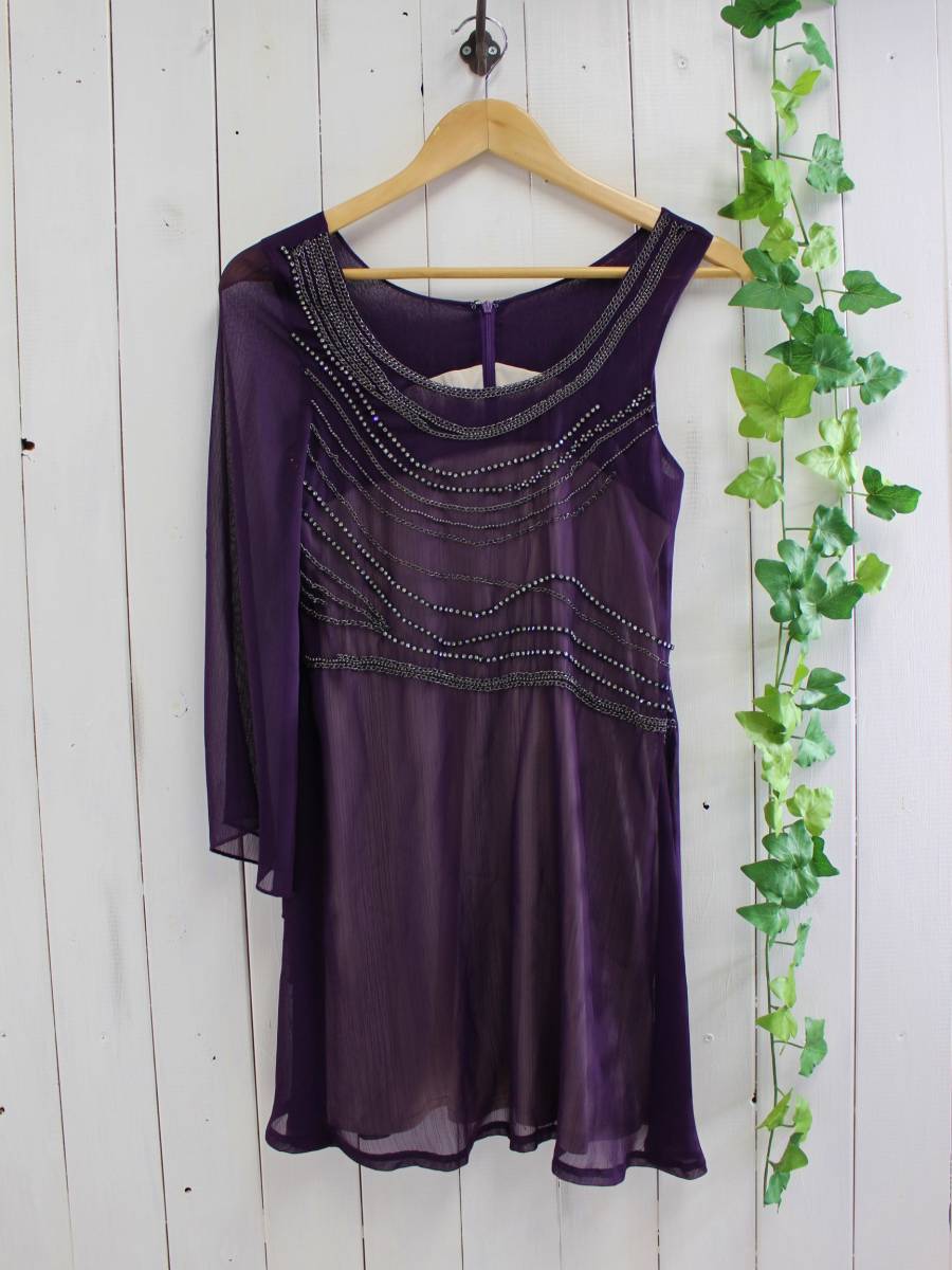 > 新品*b・r・u・s・h ブラッシュ brush*チェーンビジュー装飾ワンショルダーシフォンチュニック ミニワンピース(2)定価7,900円