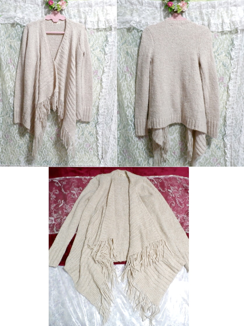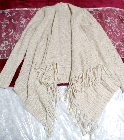 - 亜麻色フリンジストール風カーディガン/アウター Flax color fringe stole cardigan/outer