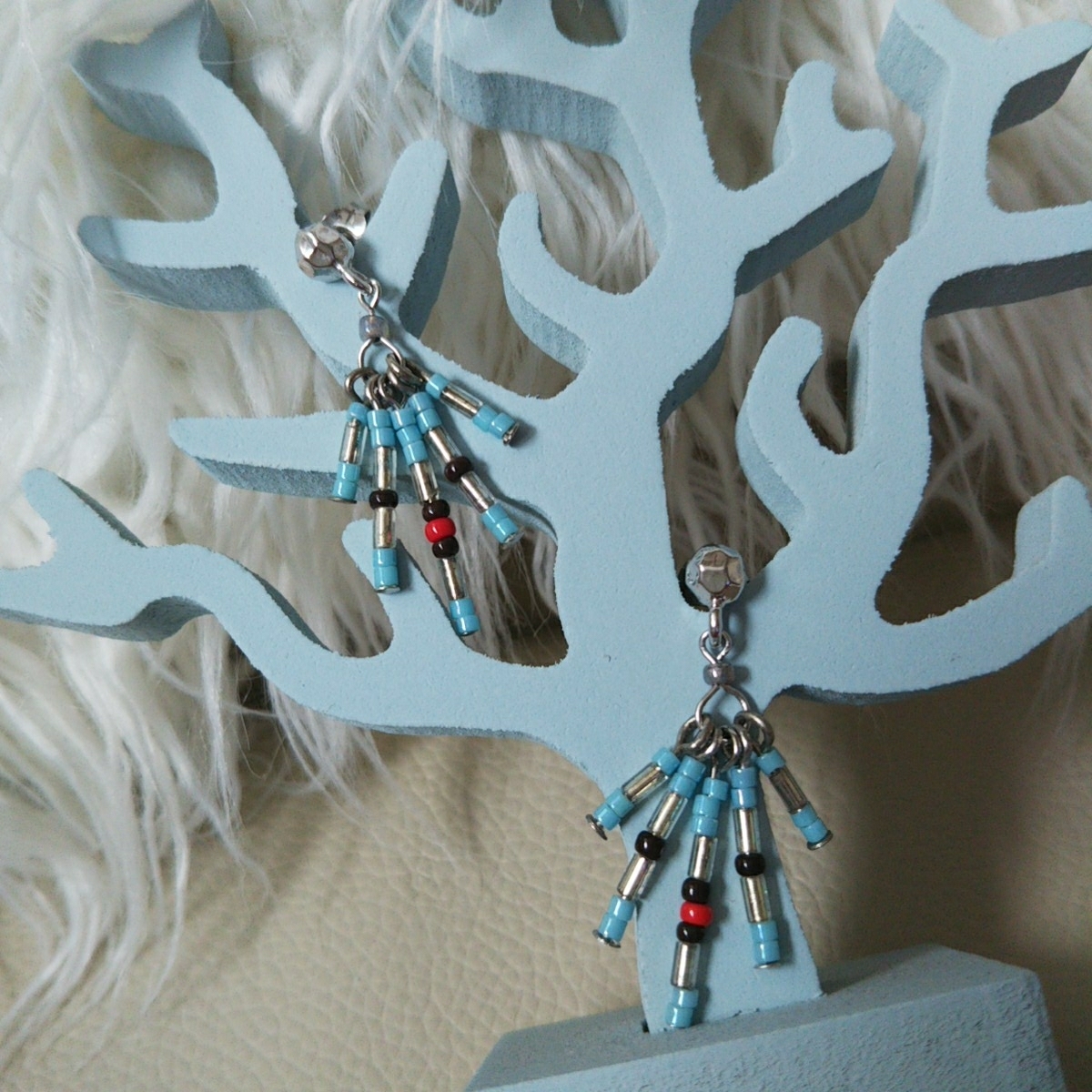 - 新品同様 ネイティブアメリカン風 ピアス ブルービーズ ターコイズ風 ロコガール系 アメカジ ハワイアン 海を感じるアクセサリー