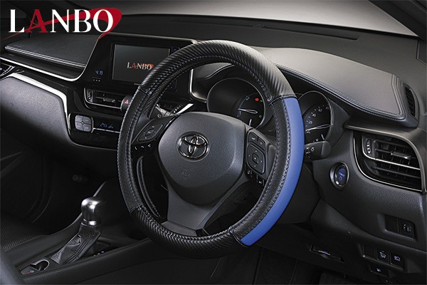 - LANBO デザインステアリングカバー ブラックカーボン調×ブルーレザー