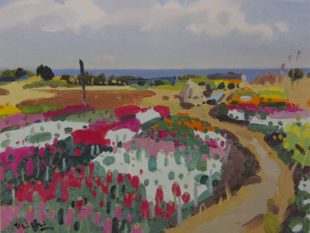 - 吉崎道治、南房の春、希少な額装用画集より、新品高級額装付、状態良好、送料無料
