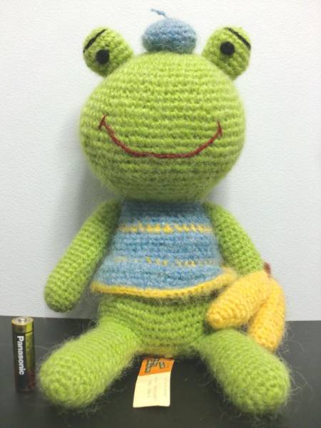 - かわいい!! 美品 あみぐるみ カエル 全長30cm ぬいぐるみ 3Oap