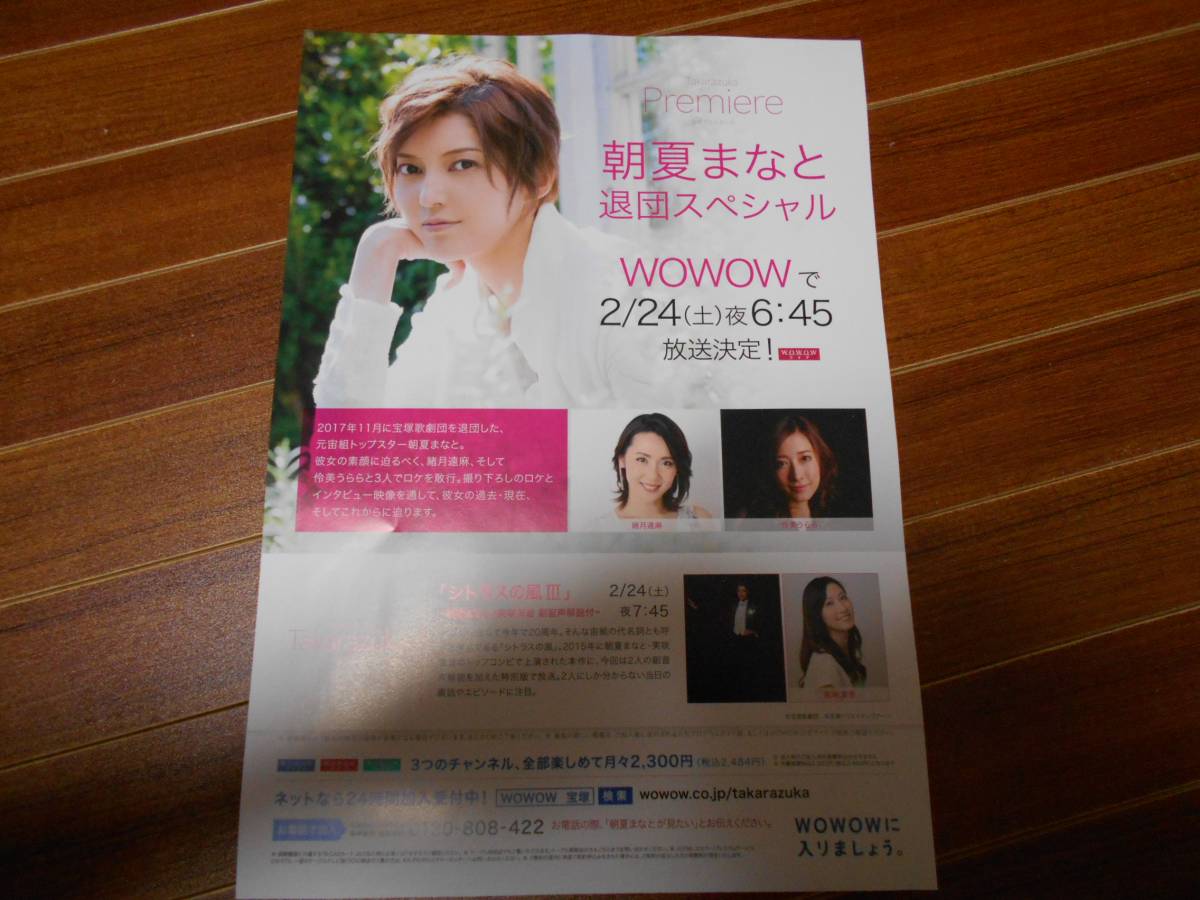 - WOWOW タカラヅカ プルミエール 宝塚歌劇 宙組 朝夏まなと 退団 スペシャル チラシ 3枚★ 朝夏まなと 緒月遠麻 怜美うらら 実咲凛音