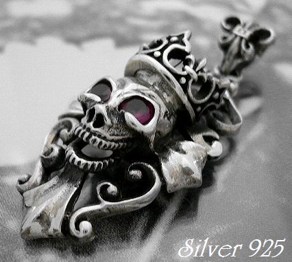 - シルバー925銀のキング オブ スカル ドクロ ペンダント/レッドジルコニア眼