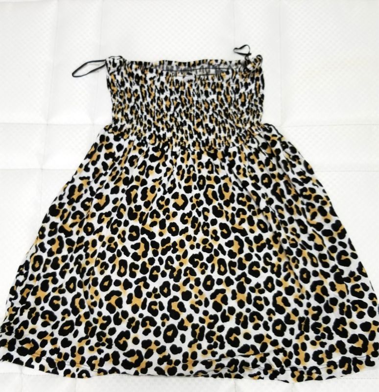 - ヒョウ柄レーヨン素材ミニスカートドレスS