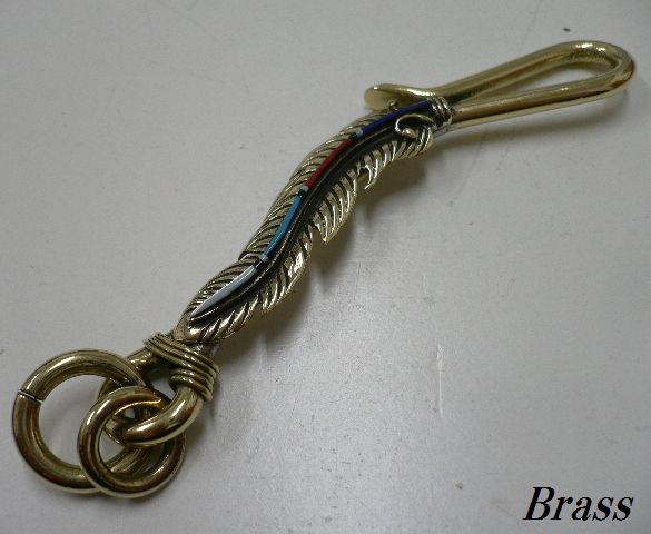 - 真鍮製Brass天然石ストーンmixフェザー ブラス キーフック/キーホルダーやウォレットチェーンのカスタムに◎