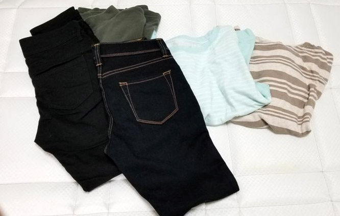 - ブラックジーンズ2本サイズS未使用品と部屋着Tシャツ3枚S~M