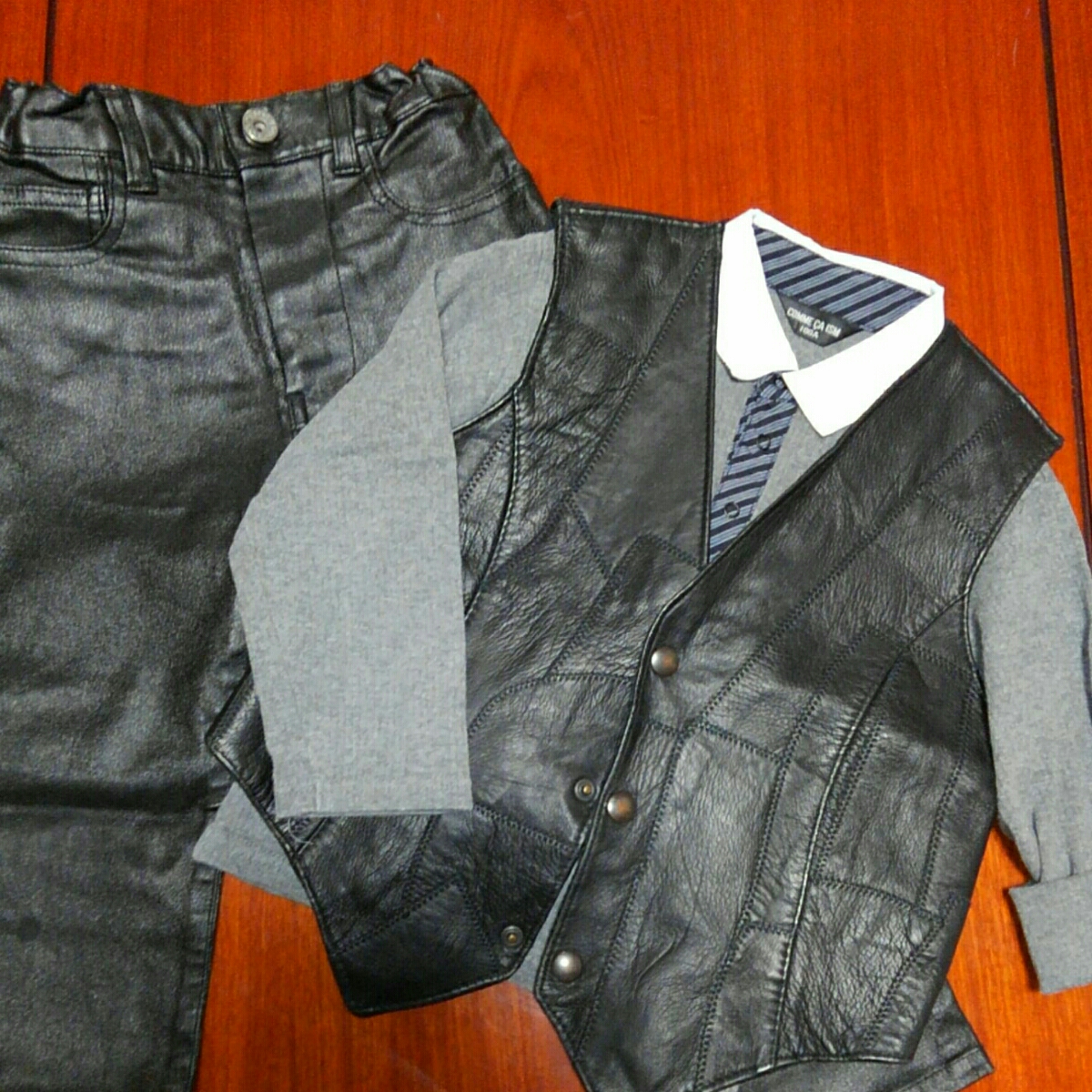 > コムサイズム/COMME CA ISM 長袖シャツ ベスト WASK ズボン パンツ 100㎝ 3点セット 中古 合皮素材 難あり
