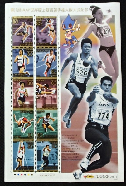 - ★記念切手シート★第11回世界陸上競技選手権大阪★80円10枚★