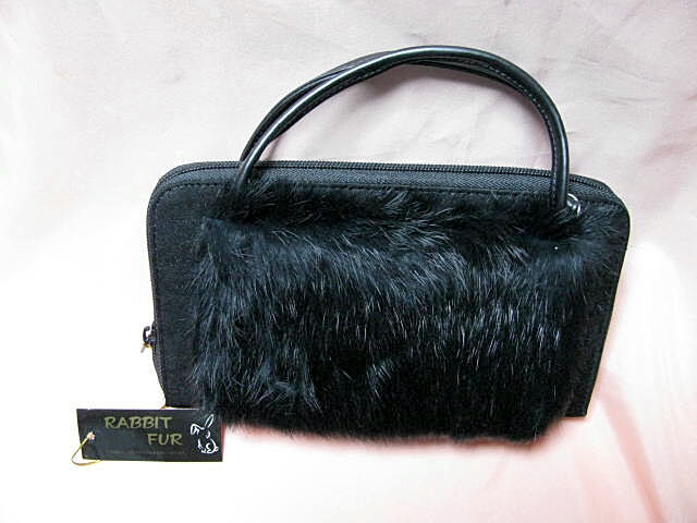 - RABBIT FUR 手提げ 財布 札入れ カード 小銭入付 ブラック 未使用保管品
