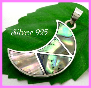 - シルバー925銀のシェル貝殻入り 三日月ムーン ペンダント/アバロン