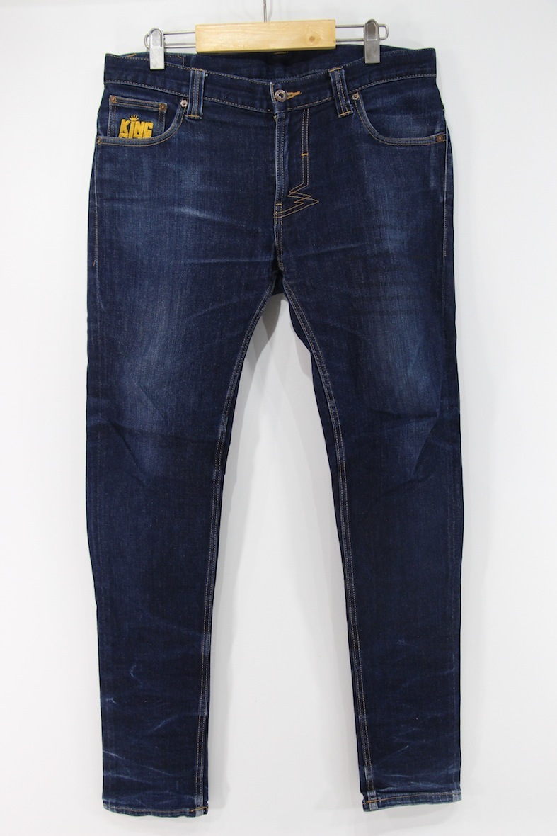 - KING SIZE デニムパンツ 34 インディゴ 濃紺 刺繍ロゴ ジーンズ ジーパン ジップフライ キングサイズ レゲエ ストリート