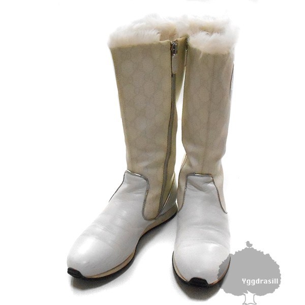 - YGG★本物 GUCCI グッチ GG柄 インナーファー ロングブーツ M 35.5G 白 ウール 羊毛 WG ホワイト