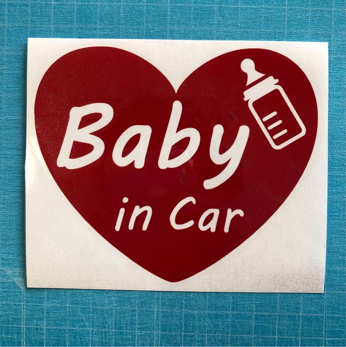 - 送料無料 Baby in car ハート ステッカー 赤色 ベビー イン カー 哺乳瓶