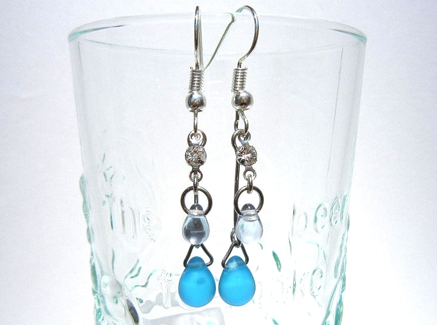 - ★しずくとビジューのピアス イヤリング アクアブルー マット ダブル キラキラ ドロップ