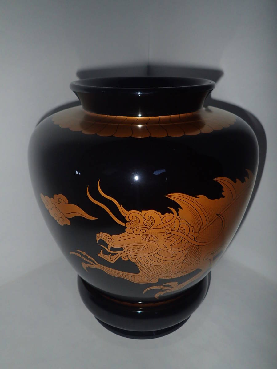 - 【未使用】平安象彦 花瓶 専用の台 龍 漆器 木製漆器 漆塗り 高さ約24.4㎝